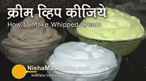 Put 1 tray ice cubes in big bowl and palace the small bowl above the ice pour heavy cream in it whip the cream with the help of electronic mixture. Then increase the speed and continue to whip for another minute or two or until cream gets stiff and starts to form stiff peak. 500 indian recipes with step by step instructions.