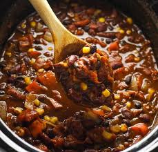 Add spice mixture and stir. Add bell peppers fire roasted tomatoes with juices 1 tsp kosher salt 1 4 tsp black pepper and broth. In a slow cooker combine black bean soup kidney beans garbanzo beans baked beans tomatoes corn onion bell pepper zucchini jalapeno chilies and celery.