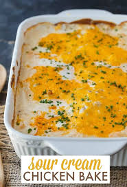 Recipe with chicken sour cream. Place bread crumbs in a separate shallow bowl. Brown the chicken breasts until lovely and golden on both sides don t cook through and pour the bacon and chicken into a baking tray. Season with salt pepper and paprika to taste.